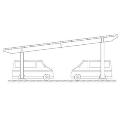 PRP-LS Polar Car Port. Covers two rows or greater. Upslope and downslope, mono slope. EV Stations. Ideal for covering larger lots, additional columns can be added to increase size.