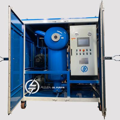 ASSEN DVTP transformer oil purification process serves to improve the properties of insulating oil. It eliminates the acid nature, over moisture, traces of water, dissolved gases, and particulate matter from the insulating oil effectively and rapidly. The bottom line of this purification process is to enhance the performance level of transformers, circuit breakers, mutual inductors, cables, and capacitors. All these equipment and machinery use an insulating system. After treatment Moisture PPM ≤3 Gas content % ≤0.01 Impurity size μ ≤1 (no free carbon) Breakdown voltage kV ≥75 IFT dynes/cm ≥40 Acid value mgKOH/g ≤0.03 Dielectric loss factors tgδ(90°C) ≤0.001 For any inquiry, please contact ASSEN for more details.DVTP High Vacuum Transformer Oil Purifier Machine is mainly used to improve the properties of insulation oil. It can remove trace water, gas, particulate matters etc. from the insulating oil effectively and rapidly so as to boost performance of transformers, circuit breakers, mutual inductors, cable and capacitors which has insulation system.