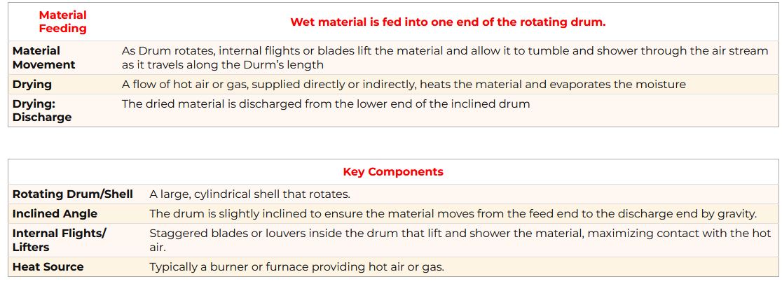 Rotary dryers are ideal for drying various materials in high-volume, continuous processes, including: