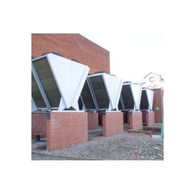 Over the fin heat exchanger is the wetting device which wets the fins with water when required. The cascading water is collected in a stainless steel collecting bath and transported back to the wetting device via a pump.