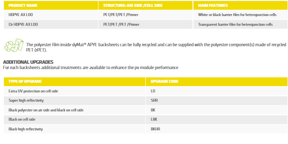 Coveme has developed a range of revolutionary backsheets specifically designed for photovoltaic modules with heterojunction cells. These products have an innovative integrated barrier layer that gives the backsheet a low WVTR and guarantees excellent protection for heterojunction cells which are particularly sensitive to moisture. Furthermore, these backsheets, not having an aluminum layer, facilitate the production process of assembling the module. They are available in white, transparent black and versions for installations up to 1500 VDC.