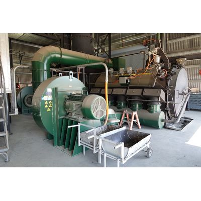The EBS dry shavings burner has been the standard burner for more than two decades in the southern yellow pine industry. It still leads the way in performance, fuel efficiency, safety, and reliability. Features a horizontal cylindrical combustion chamber: Tuyeres are located tangentially along the inner cylinder to meter the two stage preheated combustion air supplied by a combustion air blower into the burner. The wood fuel is ignited by means of a gas pilot system which shuts off once the fuel is ignited and the refractory temperature is sufficient for continuing the wood ignition process.