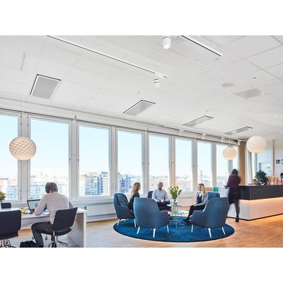 Ecophon Master™ A has an exposed grid system. Each tile is easily demountable. Suitable for open plan offices or other premises where strict demands are made on good acoustics and speech intelligibility, and where demountability is vital.