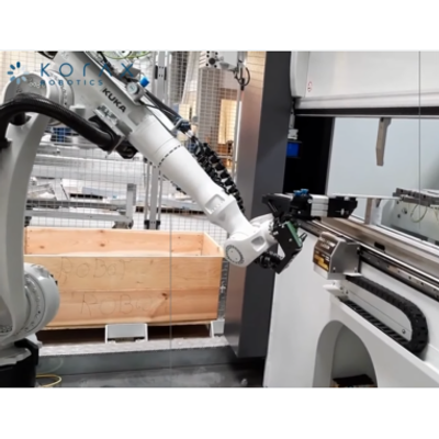 It has a unique gripper that fits the part size – it can grip 400mm x 350mm part – the minimum width of the part is 40mm – the weight is up to 3 kgs;