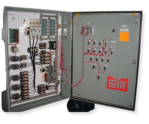 Acme Electric Oil Heaters, consisting of exchangers, oil supply and return headers and control panel are assembled and mounted on skid bases and housed in thermally insulated sheet metal enclosures.