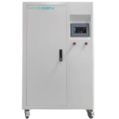HYDGEN's AEM Electrolyzers offer a sustainable and economical solution for industries transitioning to clean energy. Engineered for efficiency and flexibility, these electrolyzers use a patented material for small-scale applications, ensuring exceptional performance. Designed to operate directly from renewable energy, they feature a PGM-free catalyst, a compact balance of plant (BOP) with quick startup and high purity, and can tolerate impurities in normal water. HYDGEN is at the forefront of green hydrogen technology, combining advanced catalyst materials and optimized membranes for high energy efficiency and low hydrogen crossover. The AEM S Series electrolyzers, with capacities from 10 kW to 100 kW, are ideal for various applications in manufacturing, laboratories, and mobile hydrogen stations, offering a compact and versatile solution. Partnering with industry leaders and research institutions, HYDGEN is committed to developing efficient, scalable hydrogen solutions for a sustainable future.Discover the future of green hydrogen with our AEM Electrolyzers. Our technology provides a sustainable, cost-effective solution for industries moving to clean energy. Designed for efficiency and versatility, our patented material ensures excellent performance for small-scale applications. Embrace green hydrogen and drive your business towards a cleaner, more sustainable future.