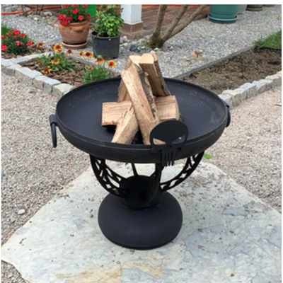 Modern handmade fire pit with flared-leg design. Perfect for outdoor BBQ, garden ambiance, patio warmth, and decorative fireplace use. Optional BBQ & grill available.