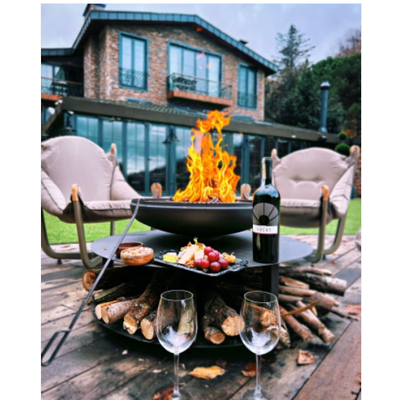 Fumolio Fuji Fire Pit with Wood Storage Grill & BBQ Options