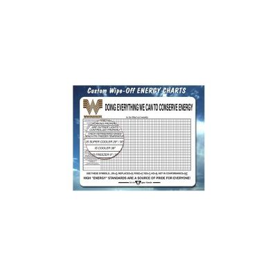 Now that you"re instituting energy conservation policies throughout your departments, you"ll want to chart your successes and monitor savings. We have developed several write-on/wipe-off charts for tracking energy usage, energy maintenance and energy processes throughout your company. These charts can all be customized with your company logo, energy message or additional information. Our experienced people will have many ideas and will make it easy for you.