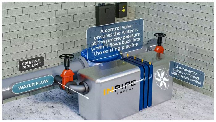 The InPipe HydroXS energy recovery system replicates the functionality of a control valve, creating precise pressure management and flow control. Instead of burning off the differential pressure, it creates renewable energy. This efficiency reduces operating costs, saves water, reduces carbon emissions, and extends the life of your infrastructure. The smart-control technology allows for real-time data collection for vastly improved verification.