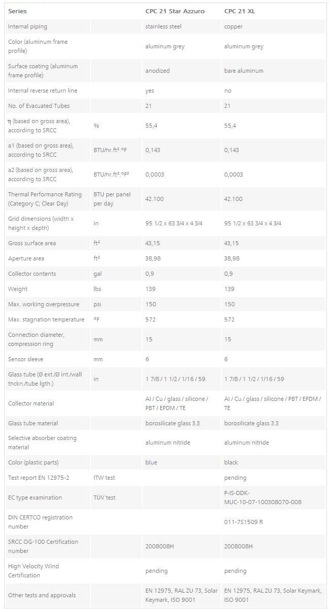 Ritter - Model CPC 21 Star Azzuro / XL -Evacuated Tube Collector