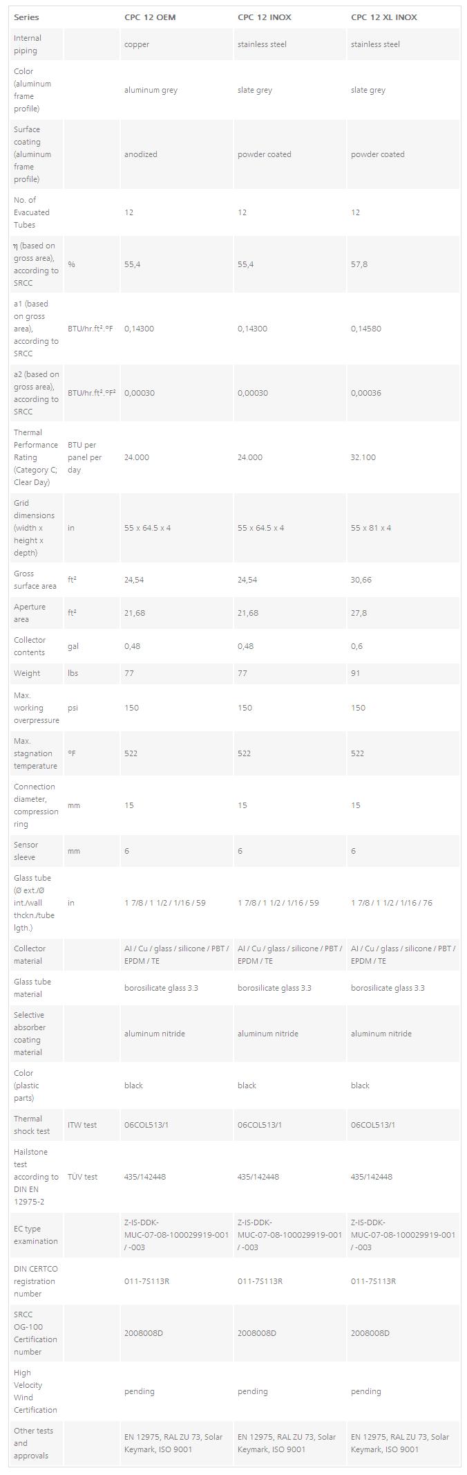 Ritter - Model CPC 12 OEM / INOX / XL INOX -Evacuated Tube Collector