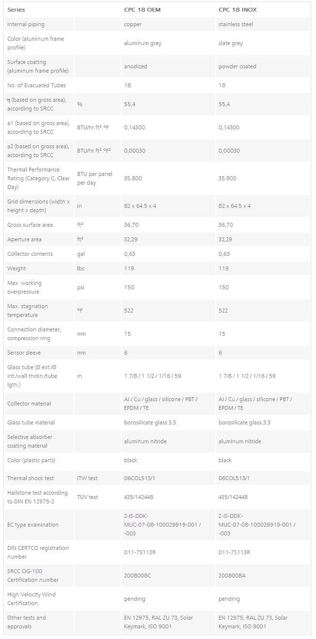 Ritter - Model CPC 18 OEM / INOX -Evacuated Tube Collector