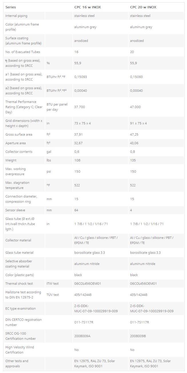 Ritter - Model CPC 6 OEM / INOX / XL INOX -Evacuated Tube Collector