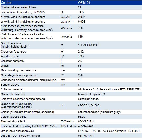 Ritter Gruppe - Model OEM 21 -Evacuated Tube Collector