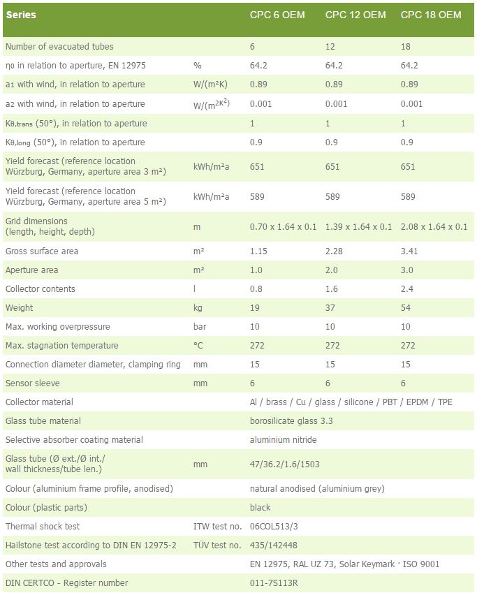 Ritter Gruppe - Model CPC OEM Series -Evacuated Tube Collectors