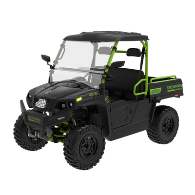 Max Range: Drives up to 75 Miles per Charge. Payload: 550 lbs. Towing Capacity: 1,500 lbs. Max Speed: 29 mph. Charge Time: 11 hours. What's Included: Unit, 16kWh Battery and 1.5kW/15A Charger. Vehicle available in Black or Camo.