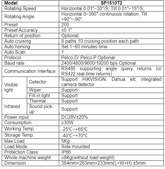 Feiyue - Model FY-SP1510T2 -Intelligent Light-load Pan Tilt