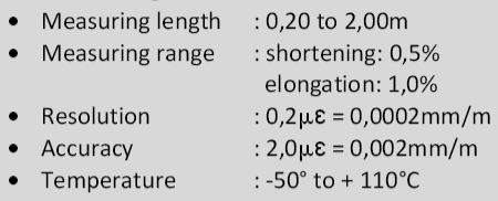 Temperature compensated FBG (Fiber Bragg Grating) sensors for embedding in or mounting on the structure. Their relative large measuring length renders these sensors ideally suitable for structures of relative heterogeneous construction materials such as reinforced concrete. The sensors can be instalied in series.