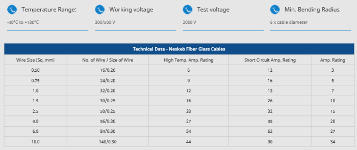 Conductor: Bare Copper Conductor / Tin Copper Conductor Class-5. Insulation: Silicon Rubber. Glass: Fiber Brading. Colour: Red, Green, Blue, Black, Brown, Grey, Orange, White, Green, Yellow.