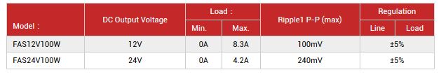 The 100W dual output switching power supply feature the constant voltage mode . The products operates from 100~240VAC and offers models with 12V and 24V. Thanks to the high efï¬ciency up to 85%,with the fanless design, the entire series is able to operate for -40°C ~0°C.