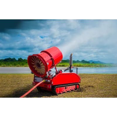 Features: Range: 50 Meters Throw, Speciality: Self Moving & Remote Controlled, Oscilation : 0-360 Degree (Vertical), Oscilation: Upto (+45) Degree (Horizontal) Control: Joy Stick With Wireless Connection (50 Meters), Movement: Traction Mounted With Engine Powered, Fire Cannon: 3 In 1 Adjustable And Fine Mist Spray Feature