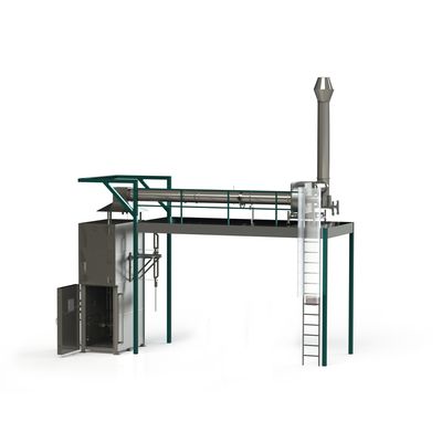 - Double-walled test chamber, stainless steel with mineral wool insulation, opening for air supply at the bottom, opening for smoke extraction, rail guides on the back wall for easy mounting of sample holders, electric winch assembly, stainless steel door with fire-resistant glazing