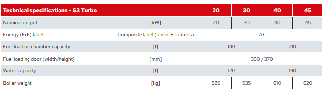 The S3 Turbo firewood boiler focuses on the basics. It includes many features that you would normally only find in high-end firewood boilers.