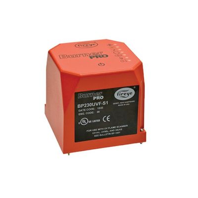 The BurnerPRO™ provides the proper burner sequencing, ignition and continuous flame monitoring for commercial heating and process equipment firing oil and gas fuels. BurnerPRO Flame Safeguard (BP110UVF/BP230UVF) Control, with integrated flame safeguard and boiler control operation, provides simplified operation for single point applications. The system is designed for use in non-permanent operations that requires burner recycle at least once every 24 hours. Seven SMART LEDs provide current operating status and lockout information in the event of a safety shutdown.