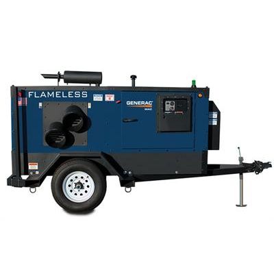 The MAC550F flameless heater provides highly efficient heat with unprecedented safety in a nice, compact portable trailer mounted package. It combines Generac MAC`s industry experience with cutting edge technology and innovative design, with the safety of a flame-free heater. The MAC550F is safe to use in environments/applications where open flame heaters are restricted.