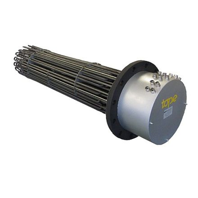 Heaters welded on a flange to heat all types of liquids, including corrosive liquids, air and gas, fuel oil and heating in ATEX zones. Heating elements welded to a flange for all kinds of drums, tanks, etc. Resistencias Tope,S.A. designs and manufactures equipments for multiple and different applications and industries, especially the chemical and refinerie industry. Generally we use ANSI flanges but our technical department will advice appropriately on the heating elements and flanges depending on the application to prevent corrosion or overheating. This way we extend the life of the equipment and save costs in repairs and maintenance.