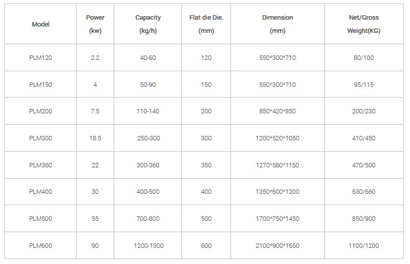- The Discharging Way, the flat die has low rotation speed, then its low rate of spoiled pellets.