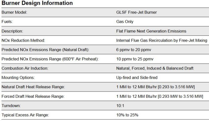 - No stabilization metal used in the burner throat