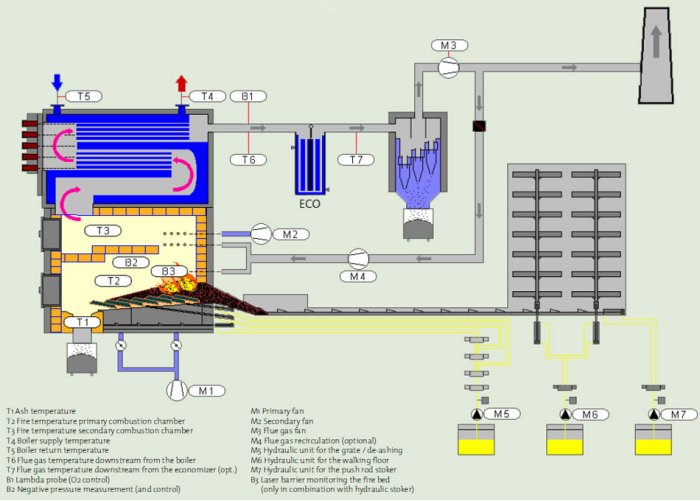 - overlapping, pre-stressed grate bars keep fuel from falling through the grate (ash is removed permanently and automatically underneath the grate)