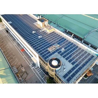Fully supported on the roof surface, the Omniablok system seamlessly accommodates flat surfaces. Its cohesive design forms a unified structure, with an approximate incidence of 9,8 Kg/m². Whether oriented to the south or east-west, The system allows adjustable panel tilting to meet desired specifications. Additionally, a thin rubber layer is positioned beneath each casting to safeguard the roof membrane.