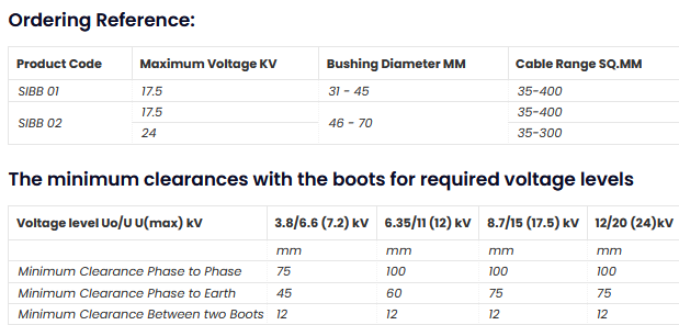 The boots are manufactured from a highly insulating and anti-tracking silicone rubber-based material with excellent insulation properties and weathering properties for a durable long life installation. The boot allows fitting over standard heat shrink or cold applied terminations. The boots are installed easily without a special tool.