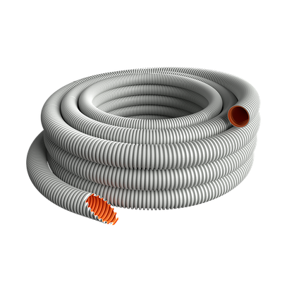 EVOEL FL-0H-SMART is a flexible, halogen-free (EN 50642) electrical installation conduit made of a special light grey (RAL 7035) plastic material, with an orange inner gliding layer.