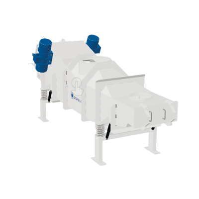 The product is fed in through the inlet and is directly distributed over the entire width of the machine. Due to the oscillating movement of the machine and the air flow over the entire surface, the grain is uniformly cooled and transported through the cooler. Various setting options ensure optimum adaptation of the cooling process to the input product.