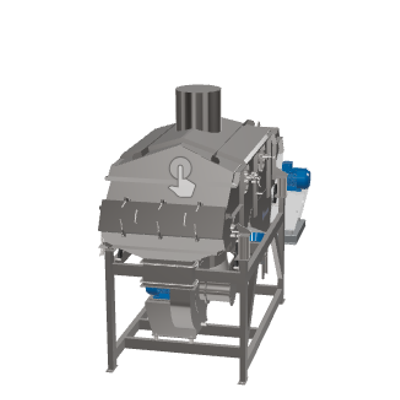 The product is fed into the machine through the inlet and is directly distributed on the entire drier width. In the first section, hot air flows through the product from the bottom to the top, and an oscillating movement of the machine conveys it to the next section. In the second section, the product is cooled by ambient air and conveyed to the drier outlet.