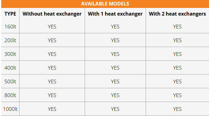 - Water storage tank of cold rolled steel with double inner enamel coating (GLASS) (160lt up to 2000lt)