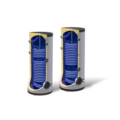 Available in various sizes, the Forced circulation tanks  for Heat pump with one or two heat exchanger serve numerous applications. They are mostly encountered in cases of many collectors, where large quantities of hot water are required. Moreover, such systems in smaller capacities often replace solar water heaters mainly for technical or aesthetic reasons.