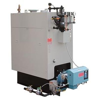 Hot water and steam boilers. Forced draft gas, oil or dual-fuel fired. For medium sized applications. Sizes from 1,200 MBH input (29 BHP output) to 3,000 MBH input (73 BHP output).