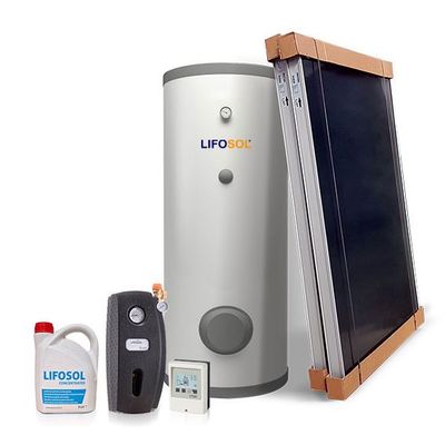 Lifosol forced solar water heaters consist of the following components; Solar collectors, Hot water storage tank, Electronic control device, Pump group, Collector mounting kit, Hydraulic parts.