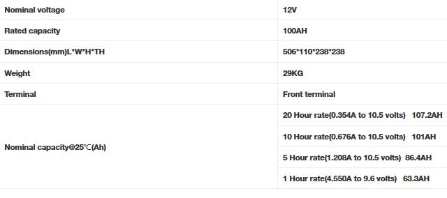 - Rated capacity 100AH @C10