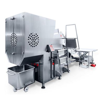 If deep-frozen blocks of meat are to be processed by cutters or mincers, then frozen meat cutters are required to cut the blocks into suitable sizes. The temperature of the frozen blocks can range from –5°C to –25°C. Two technologies have proven successful here and we include them both in our product range. The frozen meat cutter as a guillotine or roller cutter. All of these units feature a solid, robust and, above all safe, construction, with maximum cutting capacity.