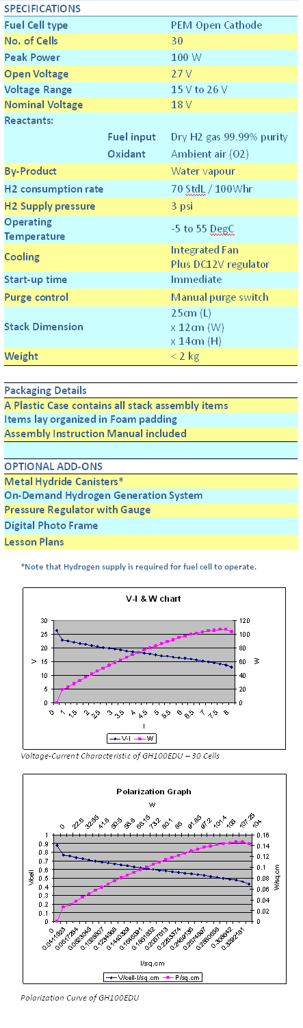 GasHub’s GH200EDU is the perfect start-up kit for Vocational/ Tertiary Level students to be acquainted with the Proton Exchange Membrane (PEM) fuel cell technologies. The ease-of-assembly, durable, robust and accurate performance features makes the GH100EDU an ideal teaching aid for teachers and tutors to conduct enriching scientific lessons and develop lesson plans for students to grasp the fundamentals of hydrogen fuel cell technology and clean energy power generation systems. The comprehensive component list, instructions and manuals and suggested lesson plans ensure that lessons can be effectively and easily set up, while ensuring a challenging yet stimulating introduction to fuel cell technology.