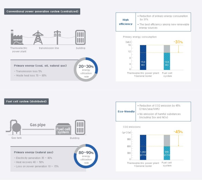 Fuel cell systems are major products of the low carbon, green growth industry with approx. 31% reduction of primary energy and approx. 45% reduction of carbon dioxide.