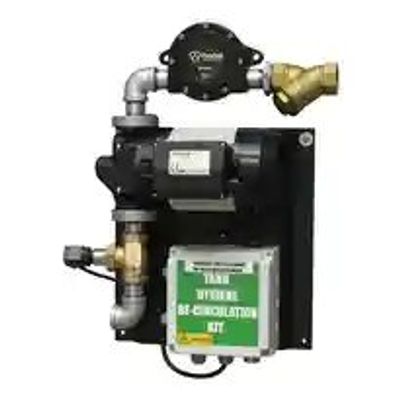 Circulates & prevents degradation of fuel inside storage tanks. Passes through a pre filter fuel conditioner to prevent microbial growth. Fuel is automatically circulated on a pre set timer moving the fuel content around at a rate of 5,000 litres per day Can be linked to our remote warning device. External alarm outputs, rated at 230VAC 10A max. For use with Diesel & Gas Oil. Features a 230V pump unit, inlet strainer, fuel conditioner, flow switch, filter clogged warning light, timer & mains junction box. Mounted on a wall/tank mounting plate. Weatherproof for outdoor use. Optional particle & water filter. storage tanks up to 65,000L (5,000 litres per day).