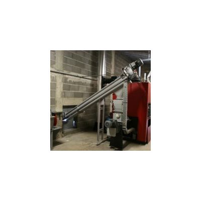 The system is composed of the hopper that serves at fuel tank and of screws feeding the boiler.