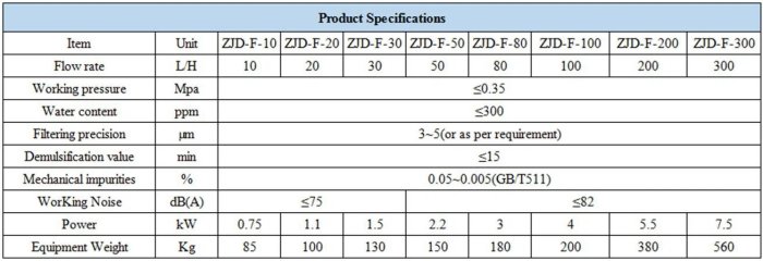 ZJD-F series fuel oil purification system is widely used in the fields of electric power, metallurgy, mining, machinery, chemical industry, communications, manufacturing, food stuff for purification or regeneration of hydraulic oil, shafting oil, refrigerator oil, machine oil, die-casting oil, air compressor oil, gear oil, heat treating oil, anti-wear hydraulic oil, emulsified oil, high water content oil ect. waste oil or contaminated oil, as well as injection molding oil, cylinder oil, textile knitting oil, high speed machinery oil, high precision lube oil.